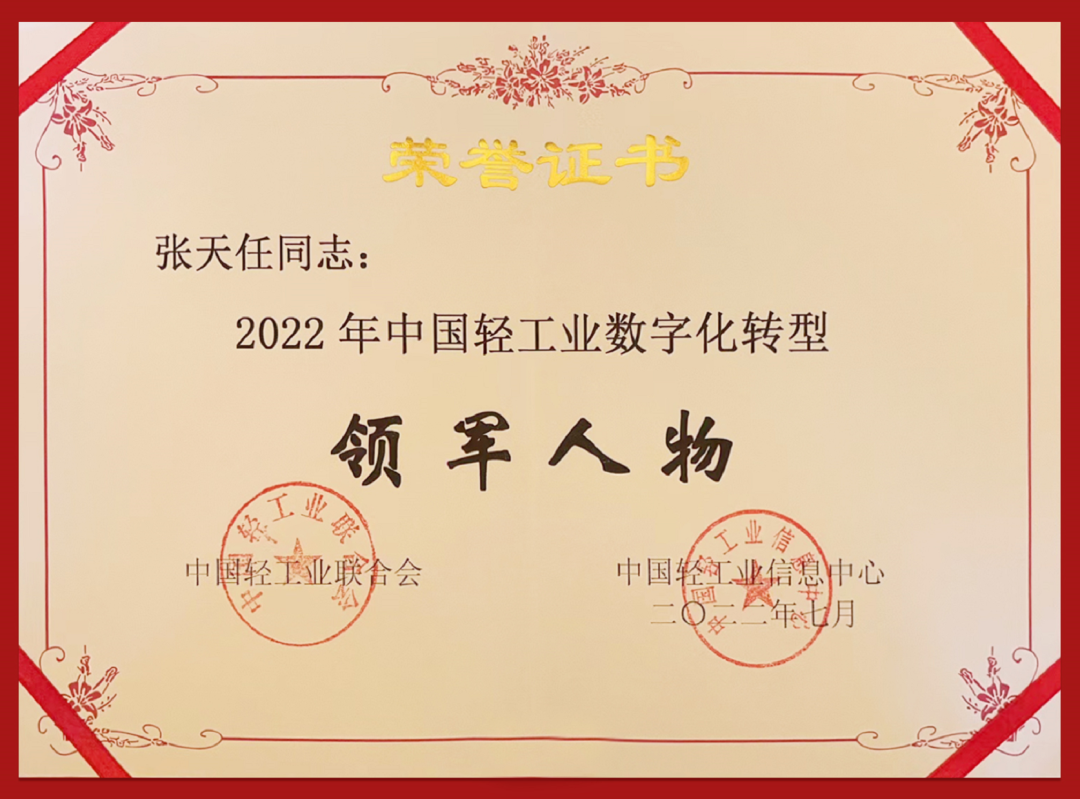 ● 7月27日,在第十二届中国轻工业信息化大会上,yabo.com控股集团获得“中国轻工业数字化转型先进单位”,张天任董事长获得“中国轻工业数字化转型领军人物”。